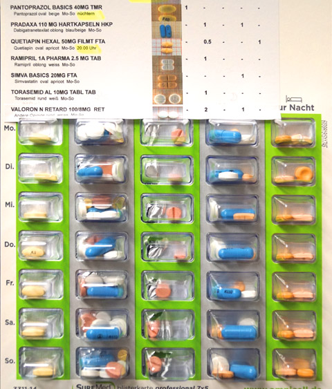 Wir bieten praktische Wochenblister für alle, die regelmäßig mehrere Arzneimittel einnehmen müssen, sorgen damit für mehr Sicherheit bei der Einnahme und entlasten Patienten und Angehörige im Alltag. Wir beraten Sie gerne!